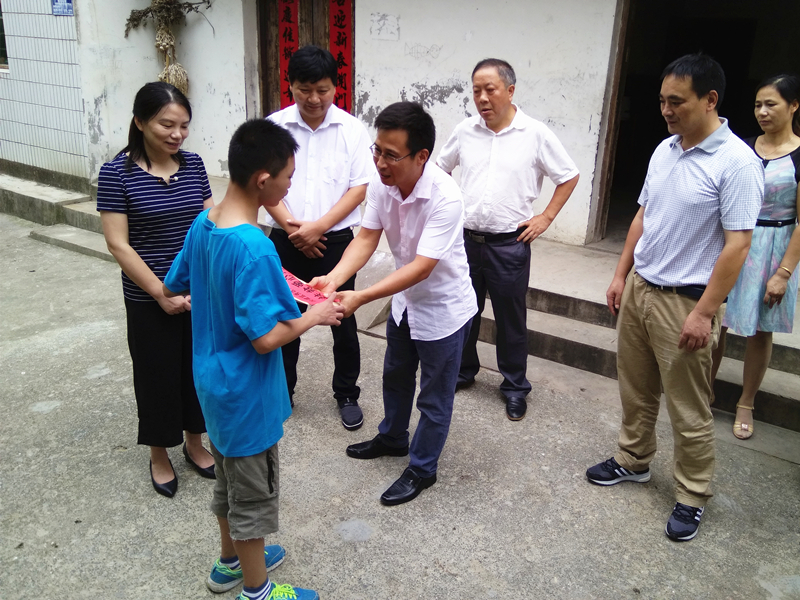 王张飞今年14岁,系一名在校初中生,因从小患有小儿麻痹症导致无法正常行走。他家是花山村东二组的贫困户,孩子父亲(幼时患脑膜炎无钱医治留下病根)失联,母亲严重智障无法自理,平时由外婆照顾,没有生活来源,但是他很上进,学习成绩一直名列前茅。这个特殊的家庭引起了民建宜秀、大观会员的关注,通过实地走访调查属实后,民建宜秀和大观区委联合发起号召,会员纷纷慷慨解囊,短短一周就筹集了2万多元爱心帮扶款。