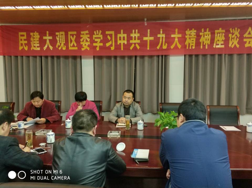 10月31日,民建安庆市大观区委在正奇家居馆会议室召开学习中共十九大精神座谈会暨区委(扩大)会议。民建安庆市专职副主委汪爱萍、常委江连富出席会议,区委班子成员及各支部主委参加会议。