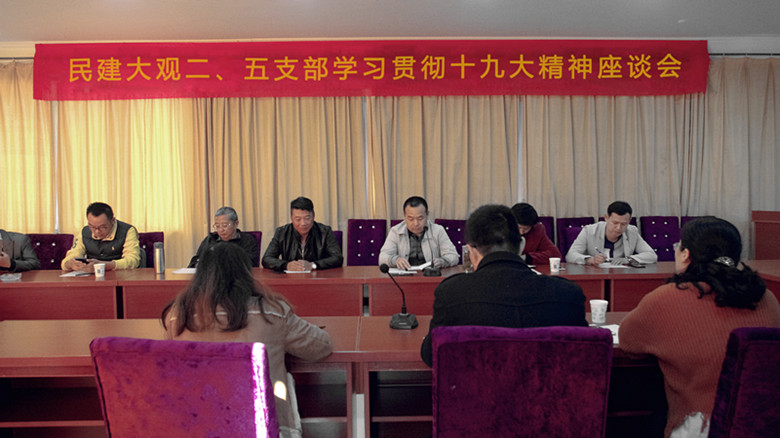 11月4日,民建安庆市大观二、五支部在杨桥镇紫阳山庄会议室联合召开学习贯彻十九大精神座谈会。民建安庆市常委江连富、区委主委白永飞应邀出席,二、五支部会员参加会议。会议由二支部主委汪剑主持。