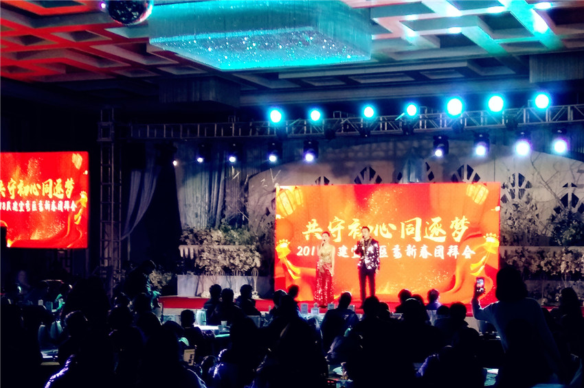 1月27日,宜秀民建主办的“共守初心同逐梦——2018民建安庆宜秀区委新春团拜会”在安庆金牛大酒店举行。团拜会由民建宜秀区副主委秦祥银主持。安庆市人大常委会副主任、民建安庆市主委童学军,市统战部副部长余玉金,宜秀区人大常委会副主任何平,宜秀区政协副主席陈启讲,市统战部党派科科长马自水,宜秀区统战部副部长叶贤进,民建市委会常委班子组成人员,迎江区委、大观区委、市直属三支部和各专委会负责人及企联会企业家们纷纷前来出席活动,与民建安庆宜秀区会员们欢聚一堂,200余人共庆新年、喜迎春节。