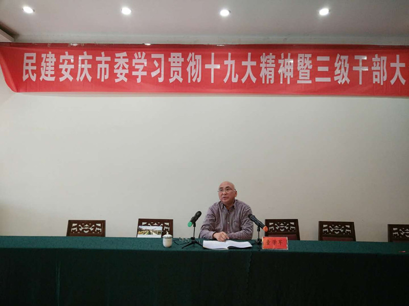 童学军强调,深入学习贯彻十九大精神、习近平总书记在全国“两会”期间的重要讲话精神是我们当前最重要的政治任务。民建市委一定要在学懂弄通做实上下足功夫,牢固树立“四个意识”,坚定“四个自信”;要深刻领会多党合作新型政党制度的内涵和实质,不忘多党合作建立之初心,切实发挥好参政党职能;要以学习贯彻习近平总书记重要讲话精神为契机,全面加强自身建设,紧紧围绕落实中共安庆市委、市政府中心工作,充分发挥民建的特色和优势,积极建言献策。