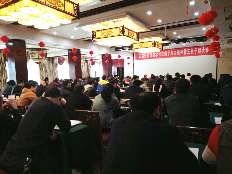 3月23日,民建安庆市委召开学习贯彻十九大精神暨三级干部大会。市人大常委会副主任、民建市委主委童学军主持会议并作专题讲座。市委专职副主委汪爱萍、副主委朱菊云、王文平出席会议。在宜市委常委、委员,各区委、专委会班子成员,支部主要负责人、2017年入会会员、市委会机关科室负责人等100多人参加会议。