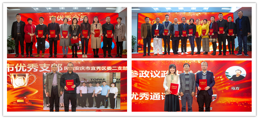 会上,2018年入会的七名新会员们就各自的本职工作、创业经历和对中国民主建国会的热爱分别作了自我介绍,新会员代表潘楠也作了表态发言,他们决心要为安庆民建的发展贡献一份光与热。随后,民建市委会领导和区统战部领导为获得2018年度市、区两级的先进集体和优秀会员进行颁奖,并对他们提出了更高的希望。