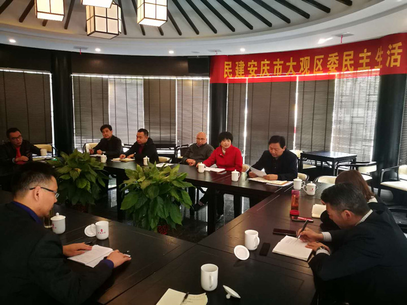 此次民主生活会中各参会人员“红红脸、出出汗”的热烈讨论及发言得到了民建安庆市委会主委童学军的高度肯定。他指出:民主生活会是中国共产党在抗战时期致胜的法宝,也是我们党派现在高速发展期进步的法宝。此次民主生活会正是对区委班子成员在换届后两年半的自我发展和党派工作进行深刻的自我检查。希望尽快落实会议成果,塑造充满激情、富于创造、团结协作、勇于担当的区委班子,奋力把民建大观区委未来的各项工作做得更好。