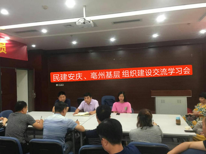 6月14日,在安徽古井贡酒股份有限公司总部会议室,民建安庆市迎江区五支部、大观区五支部、民建亳州市谯城区一支部、二支部召开了“基层组织建设经验交流”座谈会。会议由民建亳州市谯城总支主委王震坤主持。民建安庆市迎江、大观区委相关班子成员、四个支部主委、部分专委会主任及各支部会员参加了座谈会。