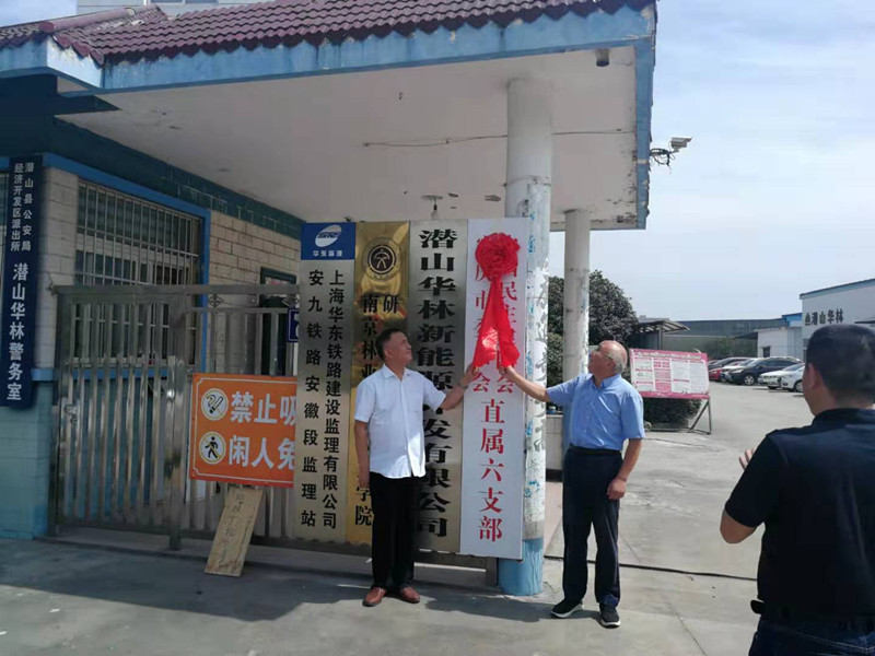 9月26日上午,民建安庆市委直属六支部在会员企业潜山华林新能源开发有限公司举行揭牌仪式。安庆市人大常委会副主任、民建市委主委童学军和中共潜山市委统战部副部长宋若坤共同为直属六支部揭牌,民建安庆市委副主委汪爱萍、秘书长冯晓斌和直属六支部全体会员参加揭牌仪式。