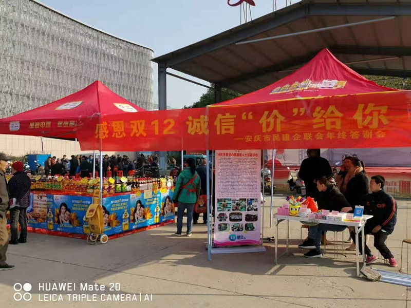 为了感谢广大民建会员对企联会的支持,安庆(民建)企联会内购平台于2019年12月12日在科技广场特举行年终答谢会。现场组织了粮油、调味、食品、白酒、日用品、装修材料、文化教育、口腔医疗等多品类产品和服务参展,共有16家企业参与本次活动。活动现场人声鼎沸,热火朝天,共实现销售额5万多元。