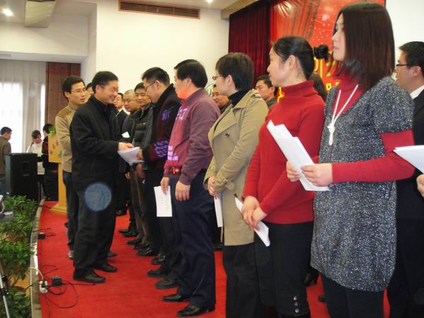 会上,对2009年做出突出成绩的会员和先进总支、支部进行了表彰,并当场颁发了荣誉证书及奖金。2009年新入会的会员还在石再华副主委的带领下,举行了入会宣誓仪式。随后,由会员和会员单位自编、自演的歌舞和小品等文艺节目依次登场,节目众彩纷呈。为了活跃会场气氛,节目中间穿插了抽奖活动,不时会有中奖的会员挂着满脸的微笑,被大家喝彩。近3个小时的联欢会高潮迭起,掌声、笑声、欢呼声连成一片。