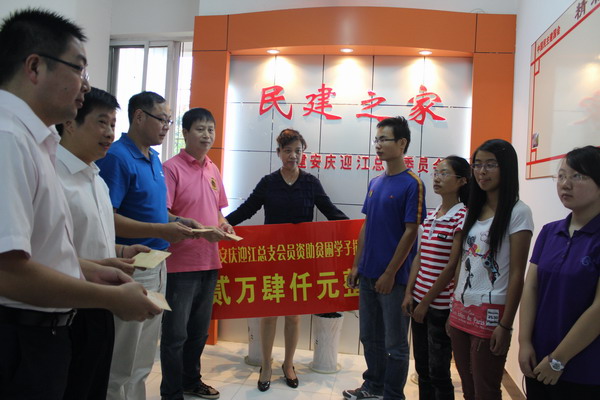 民建迎江总支多年来一直关注区内、外贫困家庭的子女就学情况,今年的扶贫助学,改成结对帮扶,采取捐赠者与特困生面对面救助方式。总支领导在迎江区统战部,迎江区妇联及辖区内办事处,及社居委支持、陪同下,冒着暴雨深入贫困家庭了解,摸底,核实,真正体现扶贫助学的现实意义。选出确实需要帮助,成绩又很优秀的学子6人,每人每年分别获得4000元的资助款,帮扶他们完成大学4年学业。