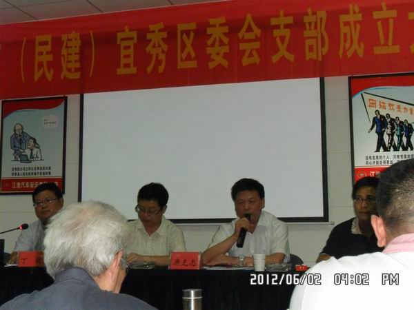 2012年6月2日下午,民建安庆市宜秀区委员会在安徽鑫驰集团会议室召开了支部成立大会,会议由民建宜秀区委副主委秦祥银主持,宜秀区全体会员参加了本次会议。民建安庆市委会驻会副主委石再华、宜秀区政协副主席、统战部部长唐克志、民建安庆市委会常委、秘书长冯晓斌出席了会议。