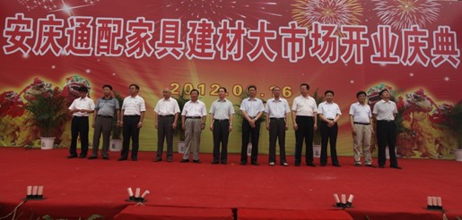 2012年6月16日上午,安庆市宜秀区民建会员秦祥银投资建设的安庆市通配家具建材大市场举行了盛大的开业典礼。庆典现场彩球飘扬,繁花锦簇,巨大的条幅承载着美好祝福,传递着通配集团恢弘的气势。市委常委常务副市长汪莹纯,市委常委秘书长宋圣军,市人大副主任丁一轩,市政协副主席、统战部长鲁德,市政协副主席、民建安庆市主委童学军,安庆宜秀区委书记夏吉苗等领导应邀出席开业庆典仪式。开业庆典由大桥开发区管委会副主任何江玉主持,安徽通配集团董事长秦祥银先生首先发表了热情洋溢的开业致辞。