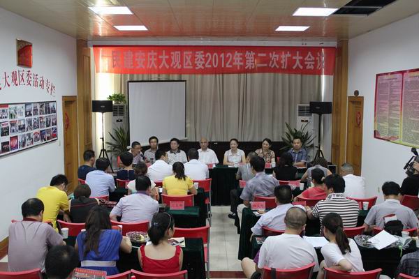 7月29日下午,民建安庆市大观区委在区委会议室召开第二次全委扩大会议,研究《民建大观区委与德宽街道办事处结对帮扶捐资助学公益活动方案》并欢迎新会员。民建安庆市委会主委童学军、副主委刘来富、汪爱萍、秘书长冯晓斌、常委江连富应邀出席大会。中共德宽街道党工委书记王海霞带领结对领导小组成员应邀参加会议。
