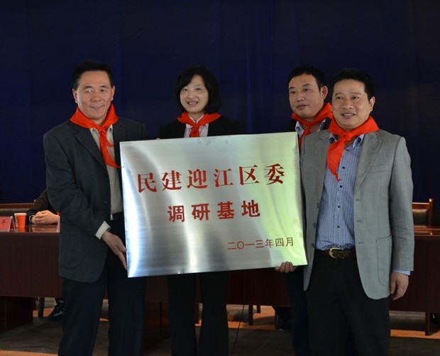 汪爱萍主委和民建迎江区委主委胡孝德、迎江区人大副主任刘文兆、区政府督学黄义文共同为民建迎江区教育调研基地揭牌。