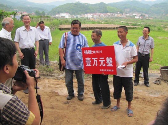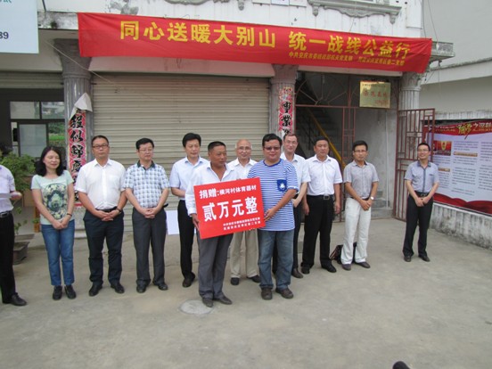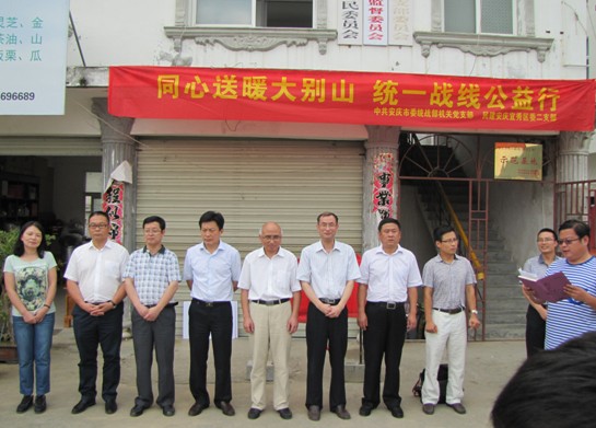 2013年7月19日上午,骄阳似火,中共安庆市委统战部机关党支部与民建安庆市宜秀区委二支部的同志们不顾高温酷暑和山路崎岖,在市人大常委会副主任、民建安庆市委会主委童学军和市政协副主席、市委统战部部长鲁德的带领下,奔赴岳西县来榜镇横河村,开展“同心送暖大别山,统一战线公益行”活动。中共安庆市委统战部副部长余玉金、民建安庆市委会专职副主委石再华、民建安庆市委会秘书长冯晓斌、岳西县委副书记邓根和等和安庆市委统战部、民建宜秀区委班子、岳西县政协、县统战部、县工商联有关领导陪同。