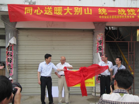 市人大常委会副主任、民建安庆市委会主委童学军、市政协副主席、市委统战部部长鲁德、县委副书记邓根和、镇党委书记胡天南共同为“同心健身广场”揭牌。