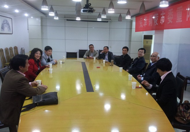 考察组一行在铜陵渡江口腔医院会议室和民建铜陵市委进行了座谈。民建安徽省委副主委、铜陵市副市长、民建铜陵市委主委叶萍,民建铜陵市委专职副主委张启政听取了朱传定院长对医院的介绍。双方市委会就民建的发展、会务管理进行了广泛的交流。童学军主委对民建铜陵市委的热情接待以及铜陵民建对民建安庆市委会会员朱传定到铜陵创业的支持表示感谢。