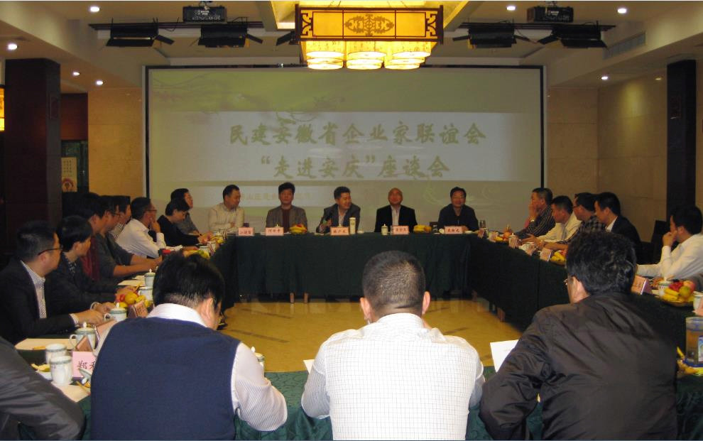 2013年10月18日下午,民建安徽省企业家联谊会在安庆民建会员企业莲会所召开“走进安庆”座谈会。民建安徽省委专职副主委陈广文,民建安徽省委副秘书长、宣传部长何世平、组织部长史扬龙,省企联会副秘书长徐斌、安庆市人大常委会副主任、市委会主委童学军、专职副主委石再华以及民建合肥、安庆、芜湖、黄山、铜陵、滁州、淮北、淮南等兄弟地市企联会近20名代表出席会议。会议由省企联会常务副理事长、安庆(民建)企联会会长江连富主持。