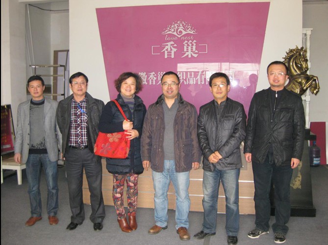 石主委一行首先来会员王根明的安徽香巢纺织品有限公司,参观了公司研发中心、样件车间、生产车间,王根明董事长介绍了床上用品家纺、出口服装的生产经营情况和自主品牌的发展规划。石主委还亲切询问了产品设计、质量控制等情况。听闻香巢纺织向产业的上游研发、销售环节转型,石主委深表赞许。他说三中全会指出中国经济只有转型升级才能持续发展,具体到一个企业也是这样。他鼓励王董带领香巢纺织保持好的势头,为安庆经济发展多做贡献。