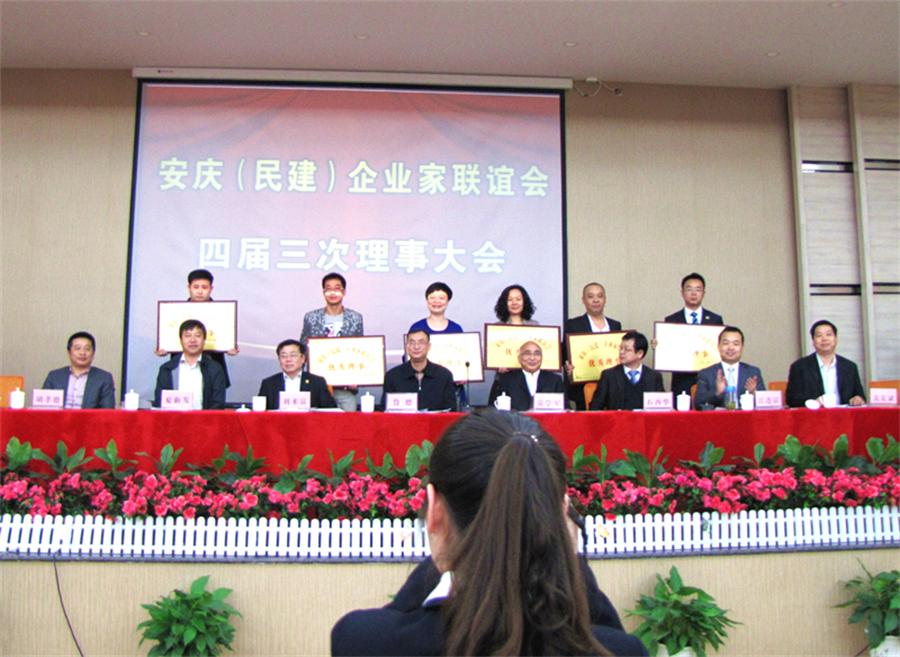 2014年4月20日,安庆(民建)企业家联谊会四届三次理事大会在市中源商学院召开。市政协副主席、中共安庆市委统战部长鲁德,安庆市人大副主任、民建安庆市委会主委童学军,副主委刘来富、石再华,省民建企联会执行副理事长夏新发,副理事长吴宏斌,民建安庆市委常委、秘书长秘书长冯晓斌,民建安庆市委常委王文平、江连富等出席会议。安庆(民建)企业家联谊会四届理事会全体成员、民建安庆市委委员、民建安庆市委会机关社会服务科科长、民建安庆市各区委会、市属支部、各专委会主任委员参加了会议。会议由常务副会长丁健主持。