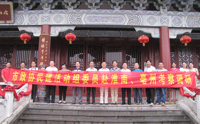 2014年5月31至6月1日,安庆市政协民建活动组委员一行17人,在安庆市人大副主任、民建安庆市委主委童学军的带领下,赴淮南、亳州行考察调研。民建安庆市副主委刘来富、石再华(专职)、汪爱萍等参加了调研活动。