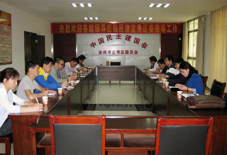 2014年10月12日上午, 民建安庆市宜秀区召开区委(扩大)会议,会议由区委主持全面工作副主委张艳主持,区委班子和各支部主任、副主任参加会议。民建安庆市专职副主委石再华,常委、秘书长冯晓斌,市委会机关社会服务科科长金林出席会议。