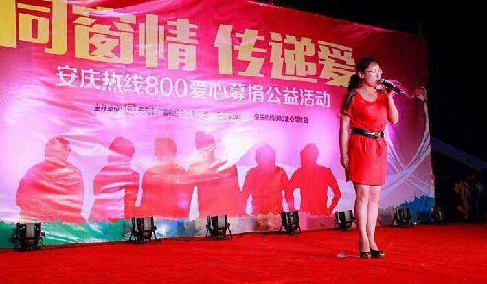 2015年8月7日,炎炎酷暑,安庆民建会员陈洁霞老师,在学校紧张的招生工作和策划黄梅戏艺术节志愿者培训这样的百忙之中,主动要求参加这次由安庆广播电视台公共频道发起的一场“同窗情·传递爱”的爱心公益行动,更以一首《真诚的美丽》将整个义演推向高潮,她飞扬的歌声,吟唱难忘的瞬间,这熟悉的旋律,演绎人间的冷暖,现场的观众无不为之动容,让这个困境的家庭看到了希望,也让更多的爱心人士伸出援手来帮助杨胜云一家走出阴霾。