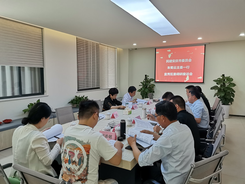 2023年6月16日-17日,安庆市人大常委会副主任、民建市委会主委朱菊云率队赴民建宜秀区委、迎江区委调研民建会员思想状况。民建市委会副主委王文平、冯晓斌,常委金林参加调研。宜秀区委会、迎江区委会班子成员,各支部主委及部分骨干会员参加调研座谈会。