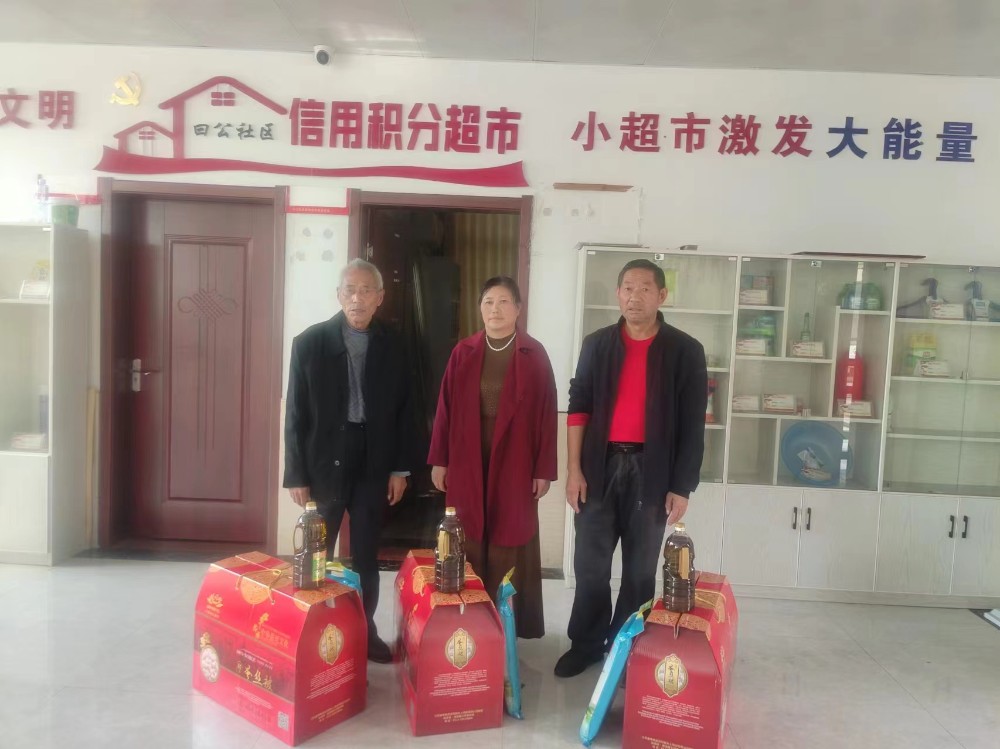 在曰公社区,慰问组与老人们亲切地聊起家常,详细询问他们的生活情况,了解他们的健康状况,送上节日的美好祝福,并带去米油、蚕丝被等生活物资。其中,蚕丝被由民建宜秀区委委员李晓明提供。